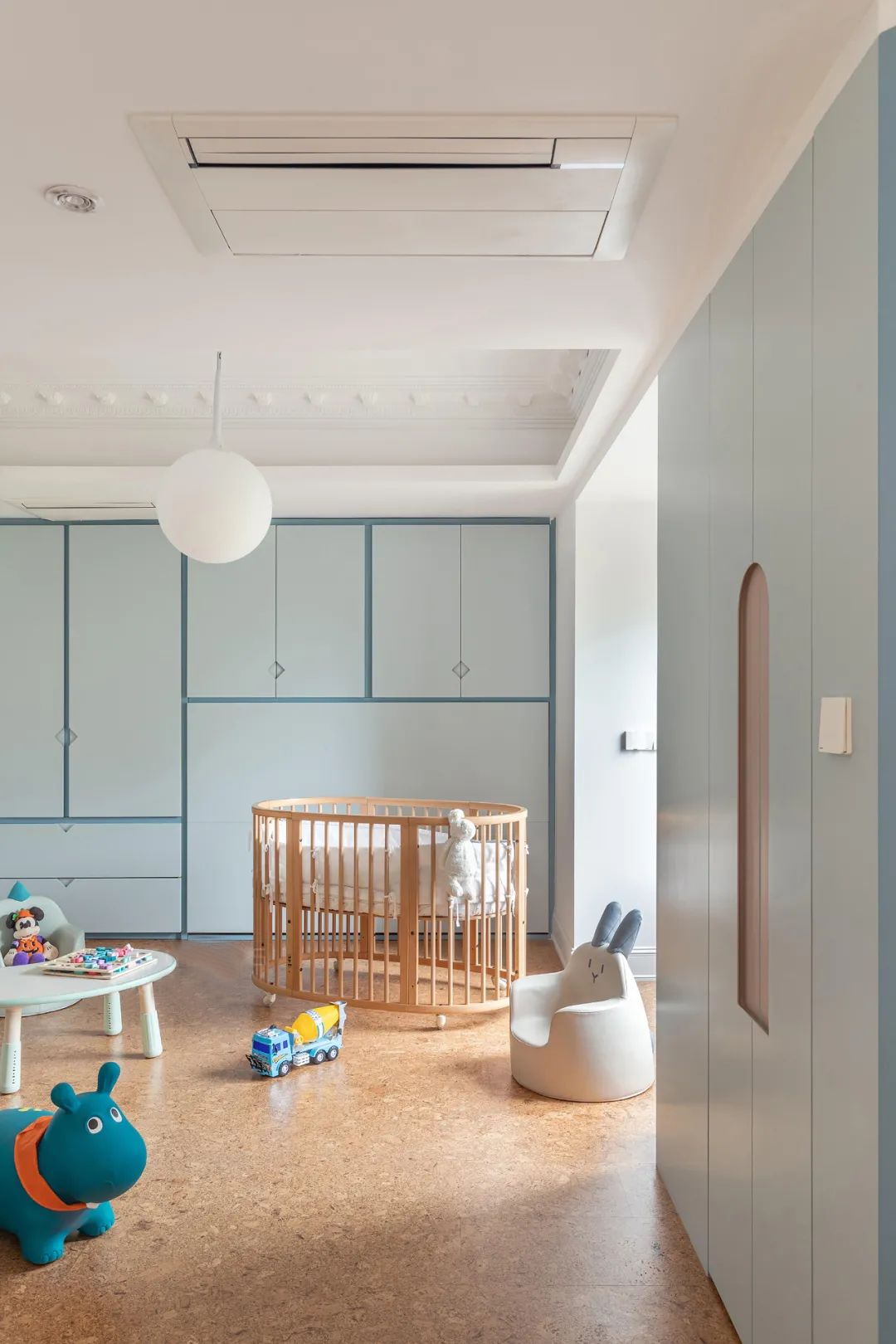 没有大体量的家具,尽量留给萌宝宽敞自由的玩耍区域。